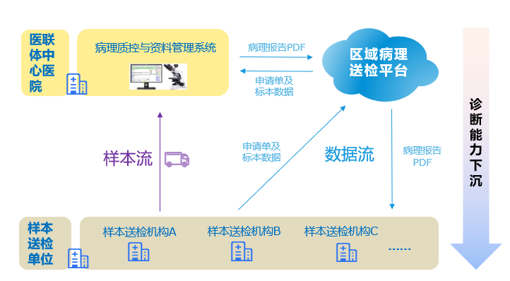面向醫聯體的病理科信息系統與區域病理送檢平臺示意圖