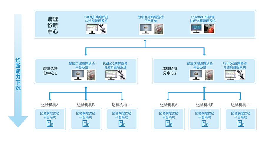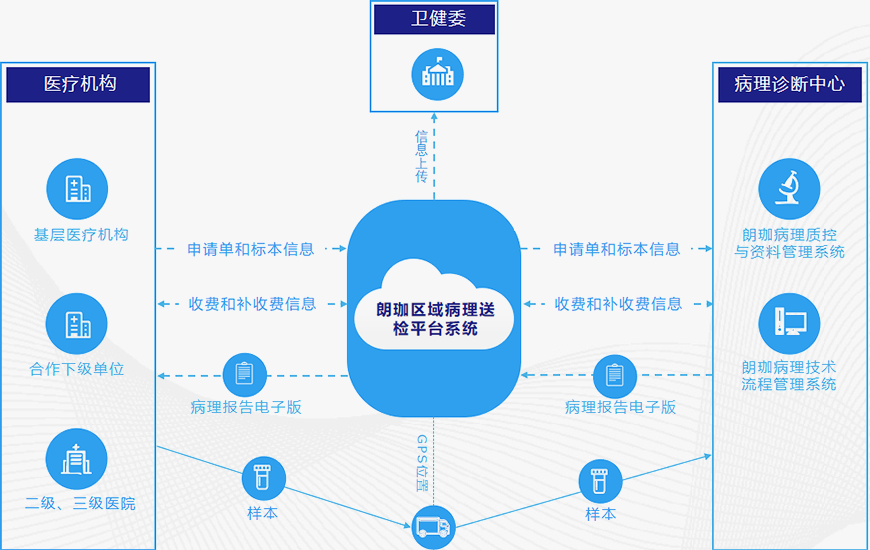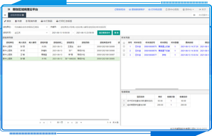 朗珈區(qū)域病理送檢平臺(tái)系統(tǒng),適用于醫(yī)聯(lián)體醫(yī)共體模式、公立醫(yī)院或第三方獨(dú)立實(shí)驗(yàn)室為區(qū)域病理診斷中心、以樣本送檢模式,打造將病理診斷中心與區(qū)域內(nèi)各樣本送檢單位(無病理科)緊密結(jié)合的區(qū)域病理信息平臺(tái)。