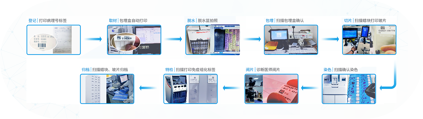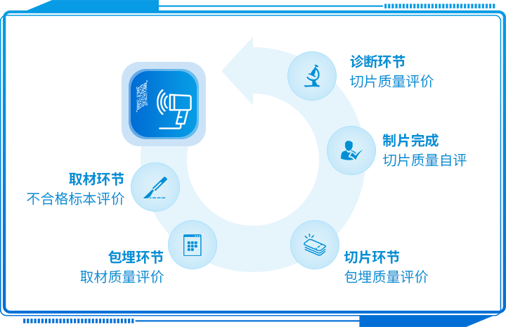 ◆通過掃描包埋盒及玻片上的二維碼標識進行科室內部樣本流轉交接確認。